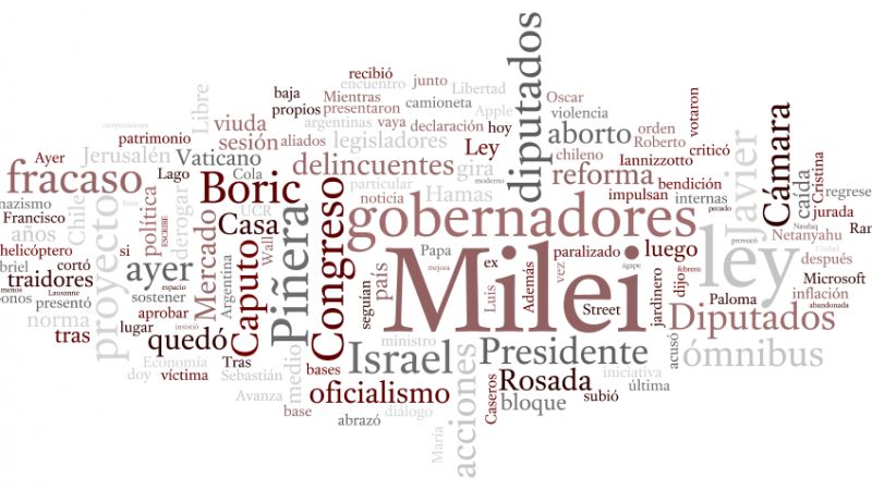 Luego del fracaso de la Ley Ómnibus en el Congreso, trascendió que un grupo de diputados de La Libertad Avanza presentó un proyecto de ley para derogar la ley de aborto, aprobada en diciembre de 2020. La novedad trascendió en la noche de este miércoles pero el expediente, con número de trámite parlamentario 233, tuvo alta en el sistema de entradas de la Cámara de Diputados el pasado lunes. El proyecto propone la derogación de la Ley 27.610 de Interrupción Voluntaria del Embarazo -aprobada en el Congreso el 30 de diciembre de 2020 y vigente desde su promulgación el 14 de enero de 2021-. Pero pretende retrotraer la situación a una normativa mucho anterior, al avanzar en contra de las interrupciones de embarazo que previamente a la aprobación del aborto legal en general eran autorizadas por distintas causales -no era punible el aborto en casos de riesgo para la salud de la mujer o en casos de violación-, presentes en el Código Civil desde 1921 y ratificadas por la Corte Suprema en 2012. La propuesta libertaria, en cambio, apenas menciona casos de "riesgo de vida". El texto es de autoría de Rocío Bonacci -diputada de 27 años, de profesión podóloga y electa por la provincia de Santa Fe- y lleva la firma del jefe de la bancada libertaria Oscar Zago, el de la diputada, cosplayer y militante antiaborto Lilia Lemoine y sus pares Beltrán Benedit, María Fernanda Araujo y Manuel Quintar. Gesto del Gobierno a la Iglesia: esquiva a los piqueteros y le entrega fondos millonarios para alimentos Es el segundo convenio que cierra Pettovello esta semana, ya que el lunes había acordado en José C. Paz un programa de apoyo con sectores evangélicos liderados por el organismo que los nuclea, Aciera, en ese caso, un global de $ 177,5 millones. En el caso de Cáritas se trata de un segundo gesto de la ministra, que no quiso negociar con los sectores piqueteros que la presionan por más recursos y que el último lunes convocaron a una marcha hacia la sede de Capital Humano en reclamo. Se trata de un acercamiento del Gobierno a la Iglesia, después de que la Conferencia Episcopal planteara la necesidad de que los fondos se transfieran de manera urgente. Conciliación, no hay paro de UTA La UTA reclama una mejora salarial igual a la acordada para los trabajadores del AMBA. El acuerdo entre las partes en el área metropolitana ?CABA y el conurbano? llevó el salario básico a los $600.000 en enero y más de $700.000 a partir de febrero, aunque si se suman los viáticos y la asignación extraordinaria, los salarios podrían alcanzar a casi $1.100.000 este mes. Vuelve la doctrina Chocobar: Patricia Bullrich restablecerá el uso de armas de fuego sin dar voz de alto A menos de dos meses de haber asumido su segunda gestión en el Ministerio de Seguridad, Patricia Bullrich tomó la decisión de restablecer una antigua normativa lanzada durante el macrismo y que, tras la llegada del Frente de Todos, fue derogada por su sucesora. Se trata de la habilitación a las fuerzas federales de utilizar armas de fuego sin necesidad de dar la voz de alto. Según supo Ámbito, la titular de la cartera de Seguridad anunciará este jueves a las 15 horas en conferencia de prensa el restablecimiento de la vigencia del "Reglamento General para el Empleo de las Armas de Fuego por parte de los Miembros de las Fuerzas Federales de Seguridad?, implementado bajo la resolución 956/2018 y comúnmente denominado "Doctrina Chocobar". Máxima licuación de pesos: medidas oficiales provocaron un "terremoto monetario" Es parte de los efectos buscados por la sociedad que forman Luis Caputo en el Ministerio de Economía y Santiago Bausili, asentado en la presidencia del Banco Central. Absorción Desde el 12 de diciembre, cuando empezaron a instrumentar la política monetaria y económica, el equipo oficial explicó que todo lo que harían apuntaba a secar de pesos a la economía, excedida tanto por la hiperemisión durante la campaña electoral como la creación endógena de dinero con los intereses de los pasivos remunerados del Central, que adquirieron el rostro de la "bomba de las Leliq". Copa Argentina: River le ganó a Excursionistas con un récord y el brillo del chico Franco Mastantuono Una visita con sobreactuación La pregunta tras la derrota con la ley: ¿llegó la hora de resetear el Gobierno? © 2018 Ejes de Comunicación Ejes de Comunicación