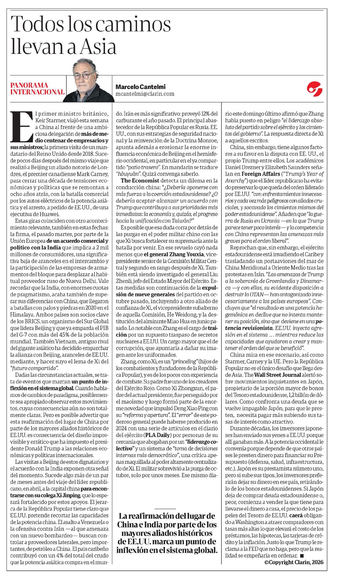 31/01/2026 00:39 · Clarín · Marcelo Cantelmi Todos los caminos llevan a Asia