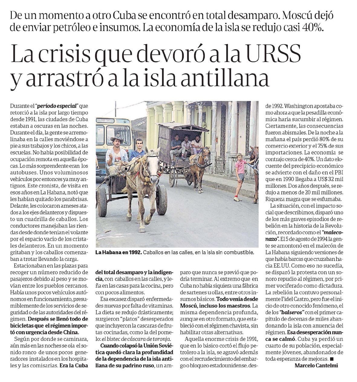 Marcelo BonelliDiscute la crisis económica de Cuba tras el colapso de la URSS, resaltando las consecuencias devastadoras para la isla y su economía.