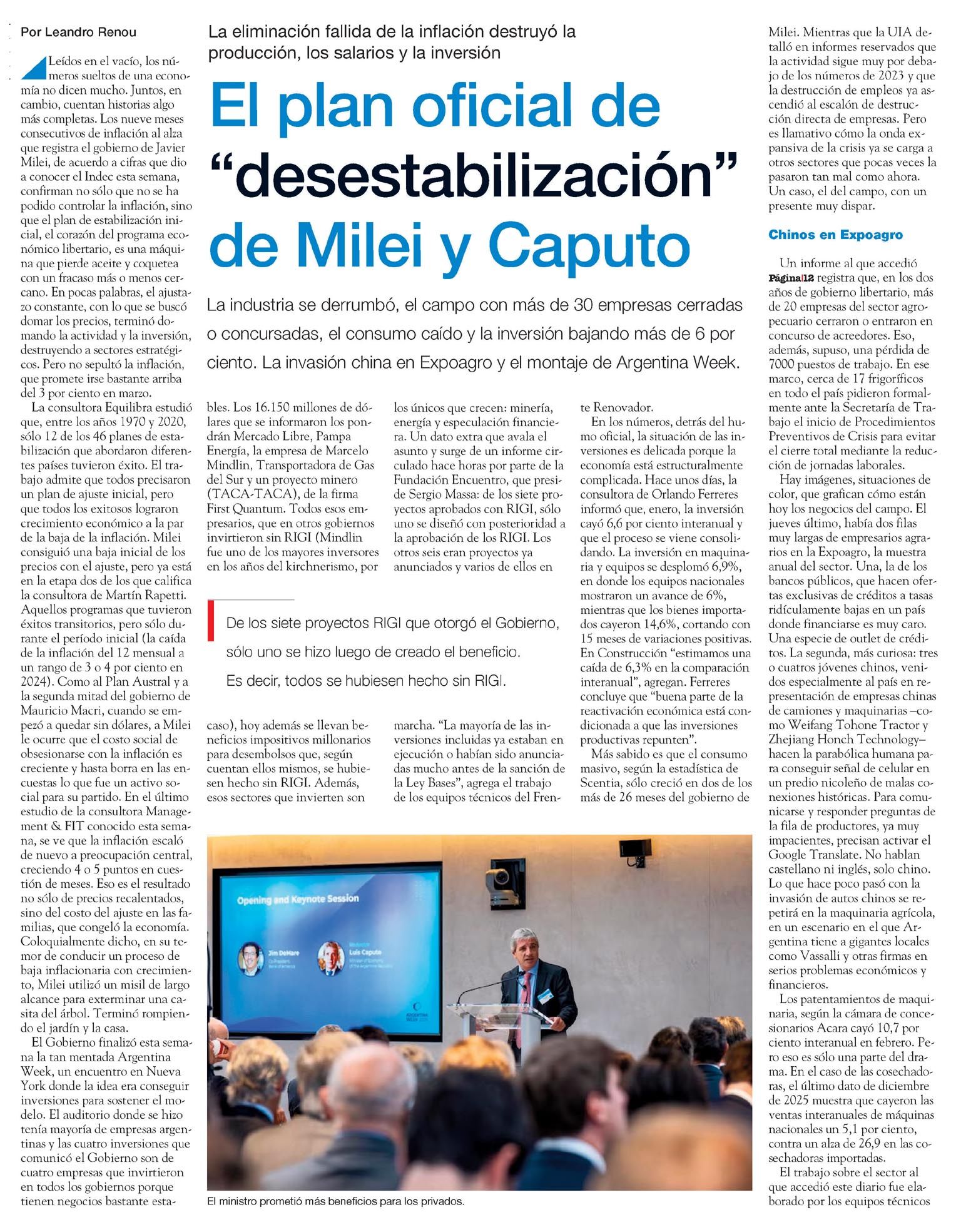 15/03/2026 03:26 · Página 12 · Leandro Renou El plan oficial de "desestabilización" de Milei y CaputoLa eliminación fallida de la inflación destruyó la producción, los salarios y la inversión.?