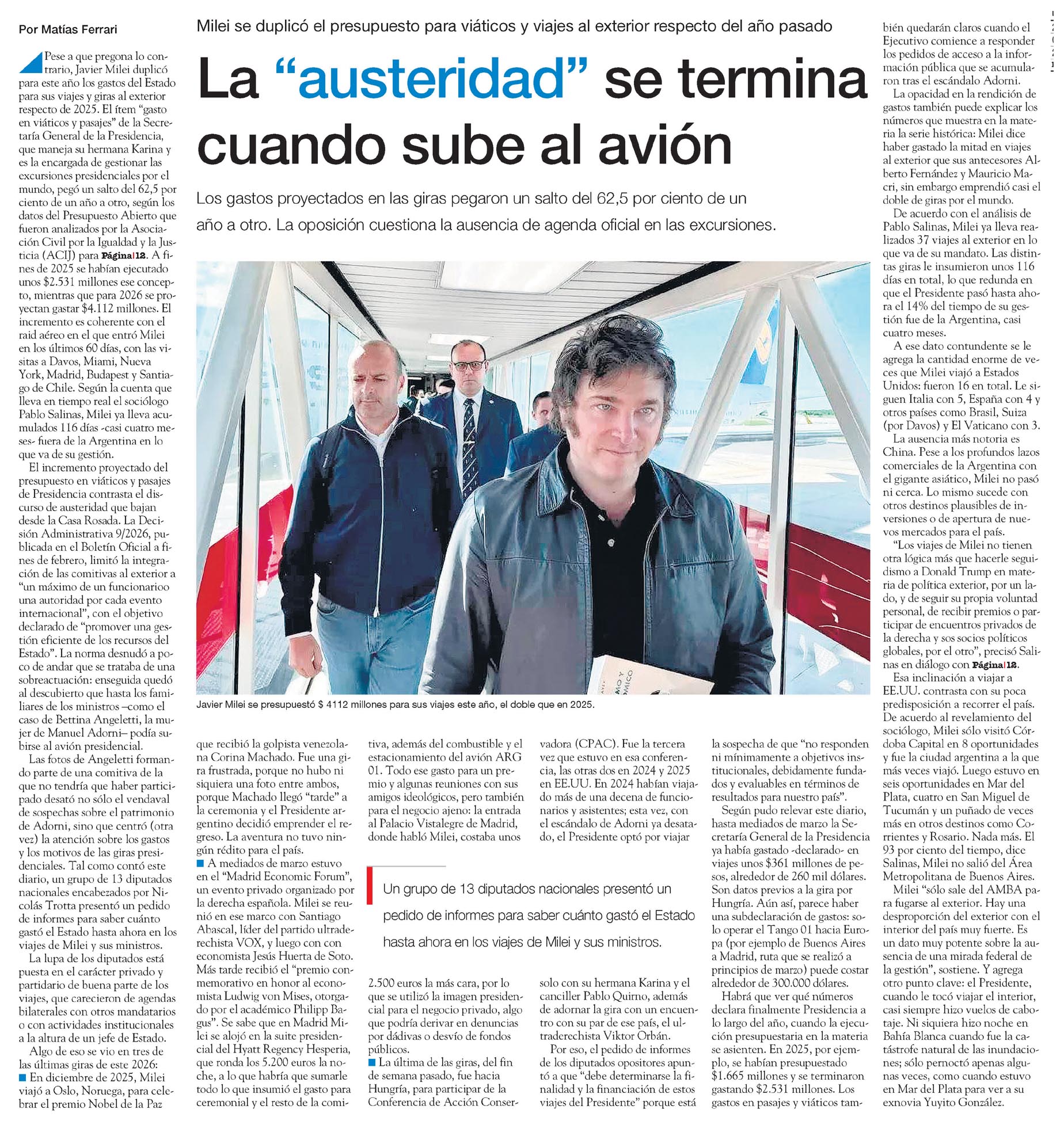 La "austeridad" se termina cuando sube al avión