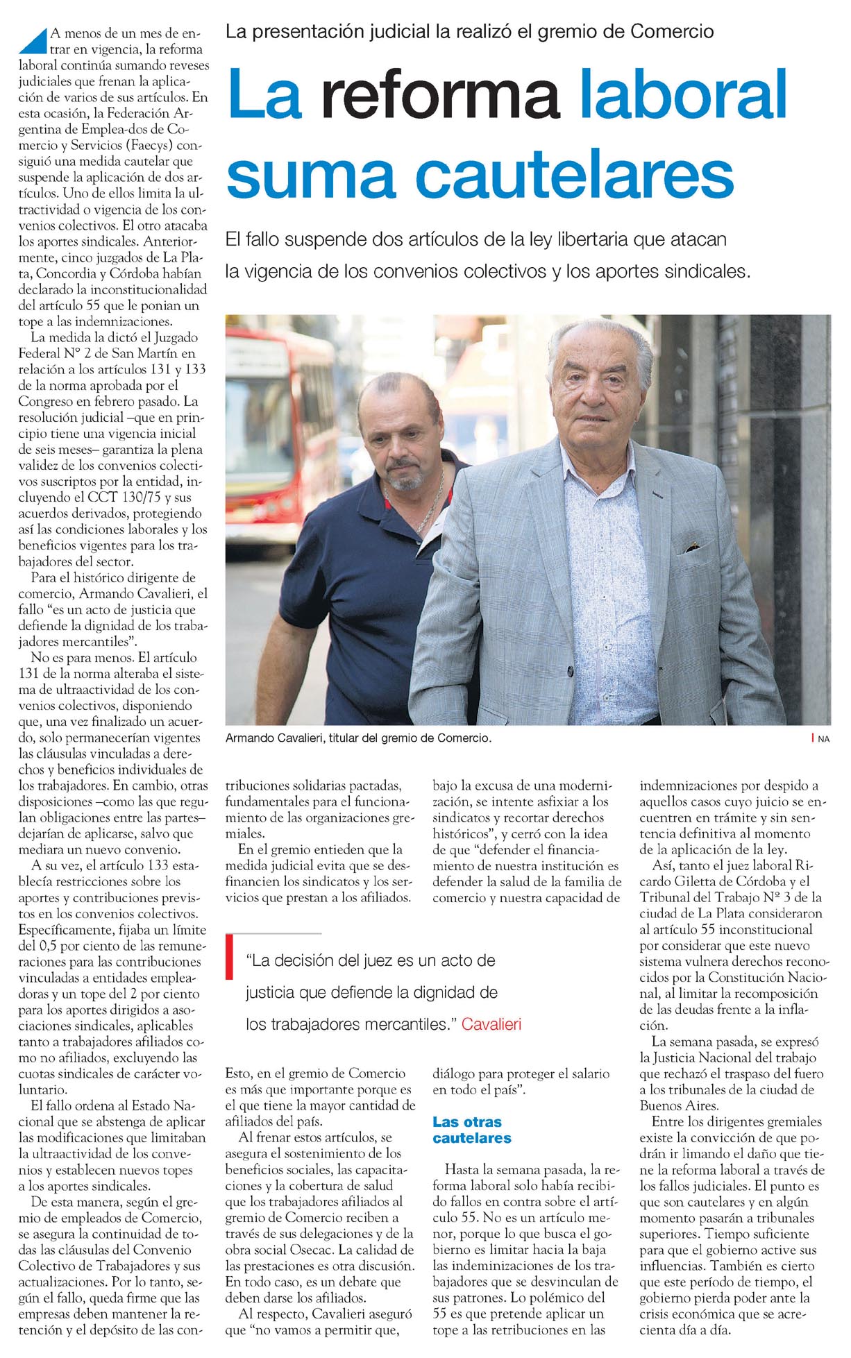 La reforma laboral, vigente desde hace menos de un mes, enfrenta nuevos obstáculos judiciales con la presentación de cautelares que frenan la aplicación de varios artículos, según reporta Página 12 . Este conflicto judicial podría afectar la implementación efectiva de las modificaciones laborales.