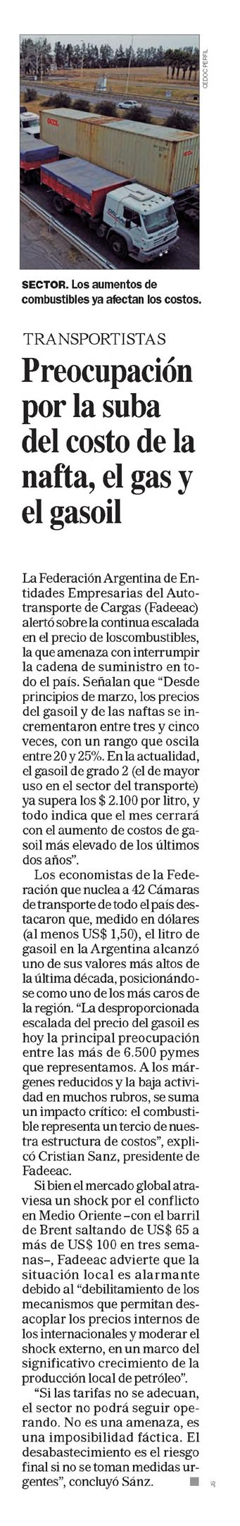 Preocupación por la suba del costo de la nafta, el gas y el gasoil
