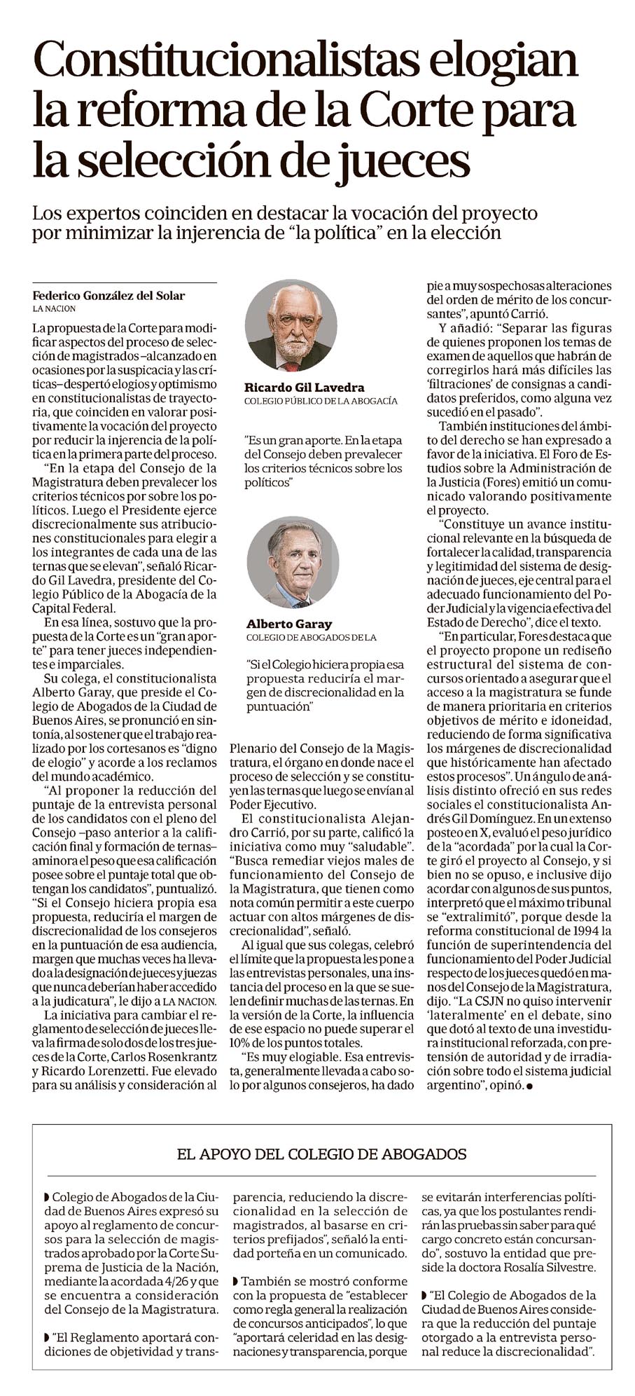 Los expertos coinciden en destacar la vocación del proyecto por minimizar la injerencia de "la política" en la elección.?Leer más