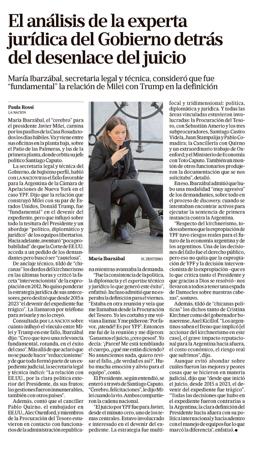 La Corte de Apelaciones del Segundo Circuito de Nueva York confirmó la legalidad de la nacionalización de YPF, lo que el Gobierno utiliza para cambiar la agenda pública y contrarrestar el escándalo político alrededor del jefe de Gabinete, Manuel Adorni, según Clarín . Además, la secretaria legal y técnica del Gobierno, María Ibarzábal, destacó la importancia de esta relación jurídica en el desenlace del juicio, según La Nación .