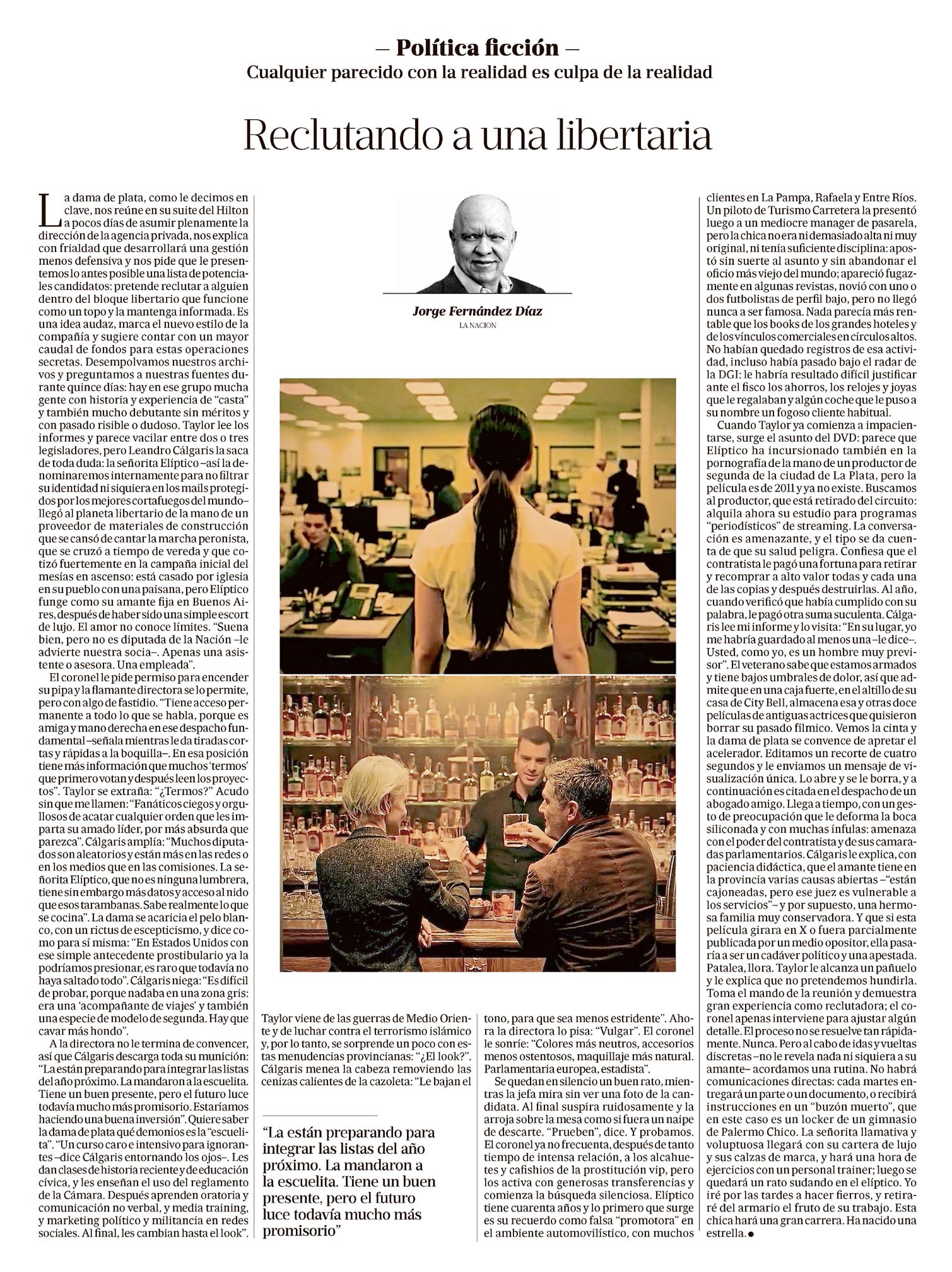 En "Reclutando a una libertaria", el autor utiliza la política ficción para explorar la realidad política actual, destacando la estrategia de incorporar figuras libertarias al escenario político. La columna sugiere que esta maniobra busca influir en la dinámica del poder y anticipar cambios en la administración.