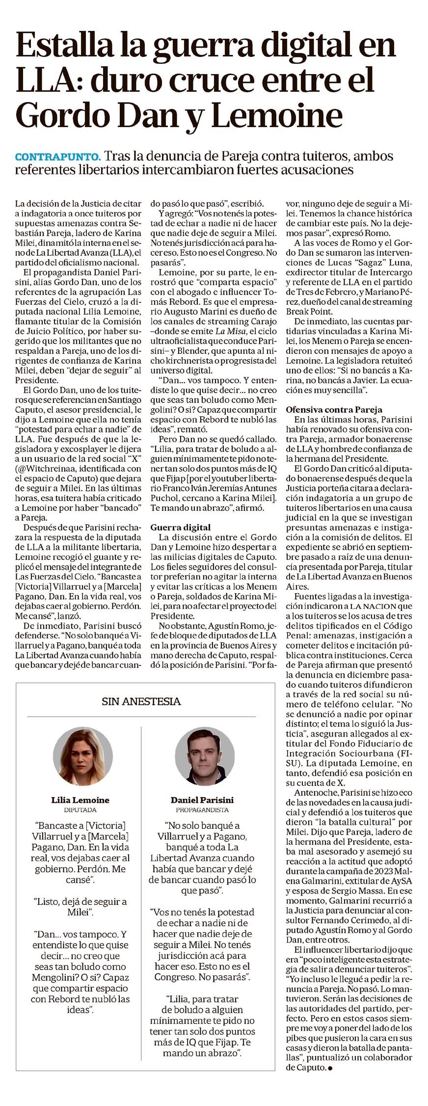 Clarín ? Lilia Lemoine vs. Gordo Dan, la guerra que hizo intervenir a Milei