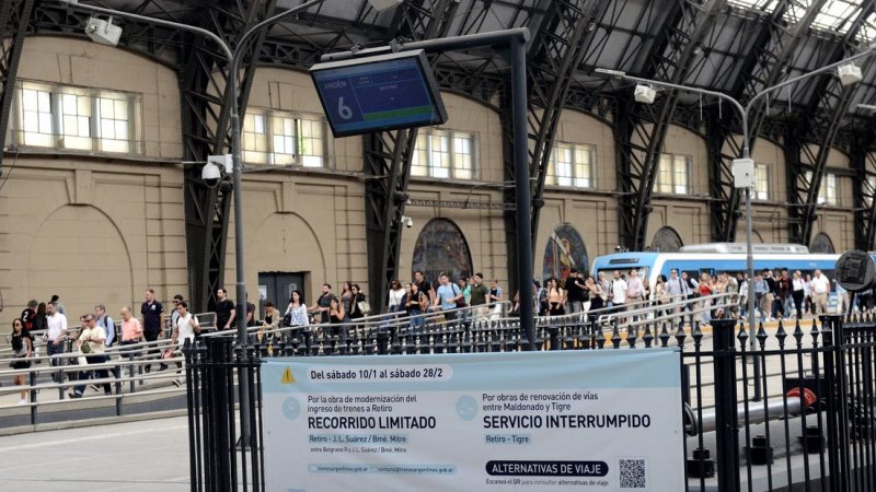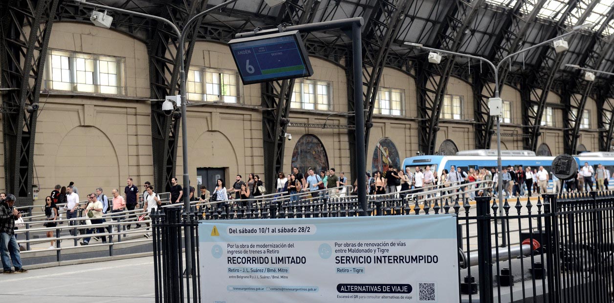 "Por la obra de modernización de ingreso de trenes a Retiro, recorrido limitado entre Belgrano R y J.L. Suárez/ Bartolomé Mitre. Por obras de renovación de vías entre Maldonado y Tigre, servicio interrumpido Retiro-Tigre", se lee en uno de los carteles que decoran la Estación Retiro del ferrocarril Mitre.