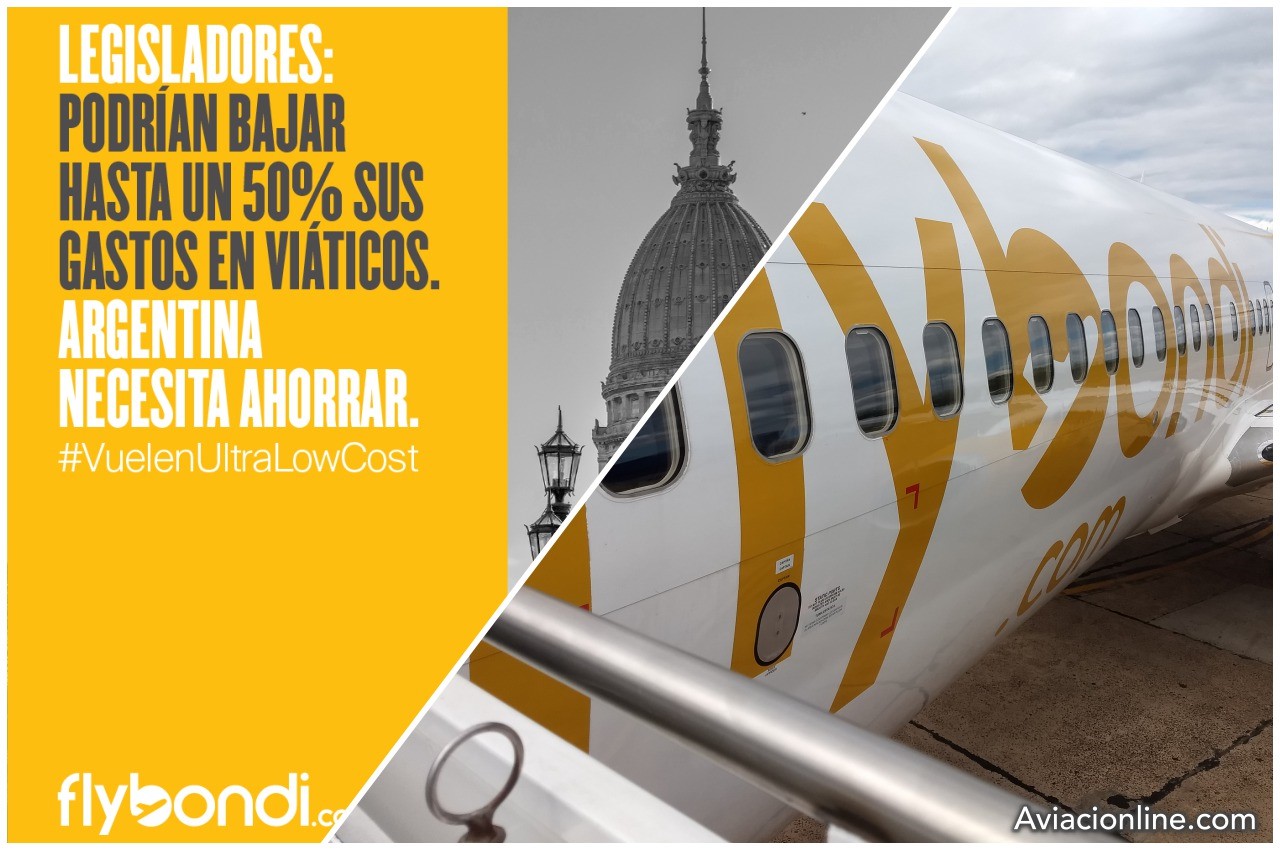 La empresa aérea Flybondi sugirió a los legisladores bajar el gasto público con ahorros en los tickets aéreos por medio de una campaña en redes sociales. Según indicó la aerolínea a El Cronista, la campaña no buscó ser "agresiva", sino abrir el debate sobre un reclamo que, entendía, estaba presente en parte de la ciudadanía: que los legisladores revisen la forma en que gastan el dinero de la sociedad. Y, según destacaron los voceros, el objetivo fue alcanzado.