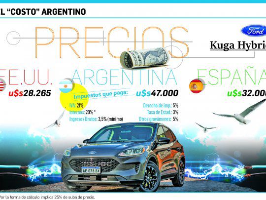 Ford lanzó ayer el nuevo Kuga. En la Argentina vale unos u$s47.000 al cambio oficial y tiene una presión tributaria de alrededor del 60%.
